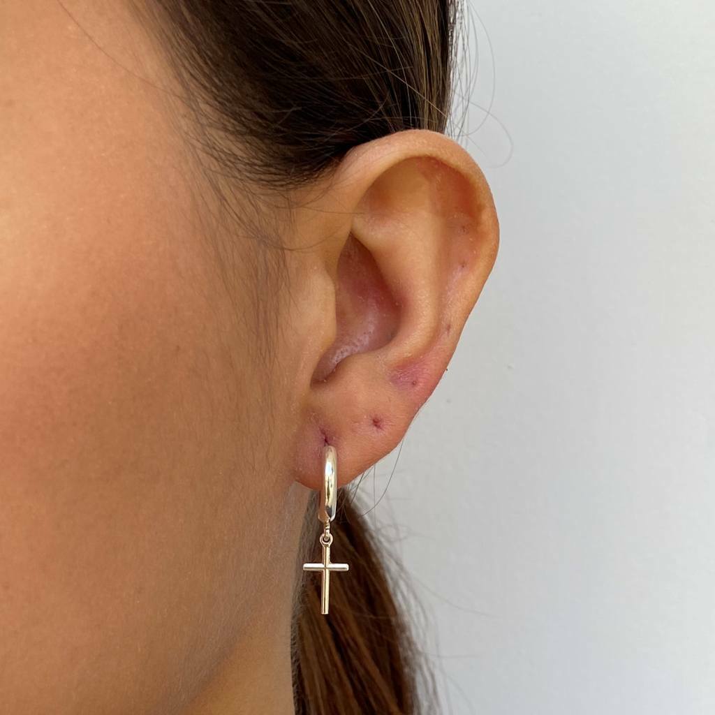 Brinco de argola fechada pingente cruz palito prata 925 é a opção perfeita para você que ama peças delicadas e que combinam com tudo.